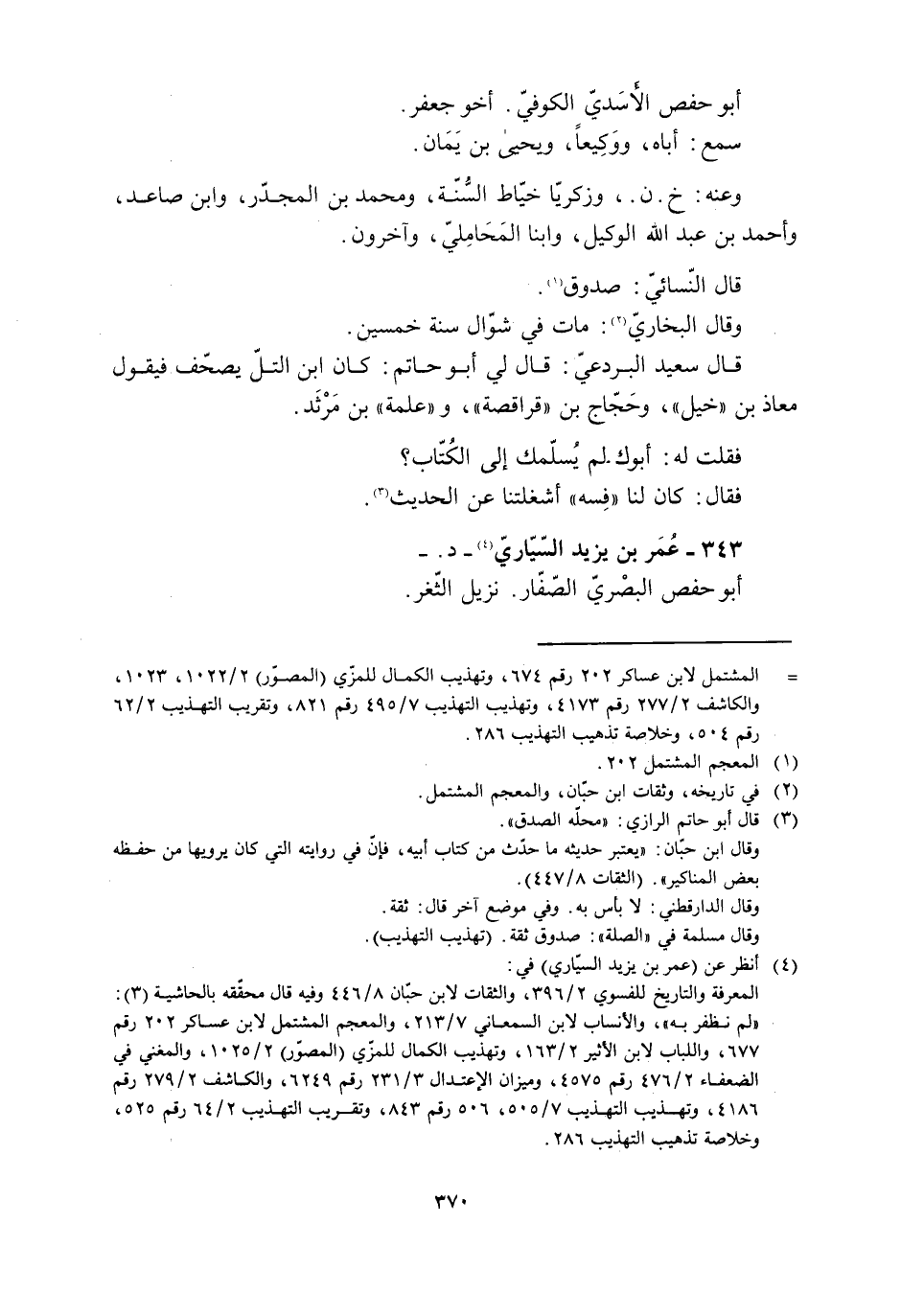 343- عمر بن يزيد السّيّاريّ [4]- د. - أبو حفص البصريّ الصّفّار. نزيل الثّغر.