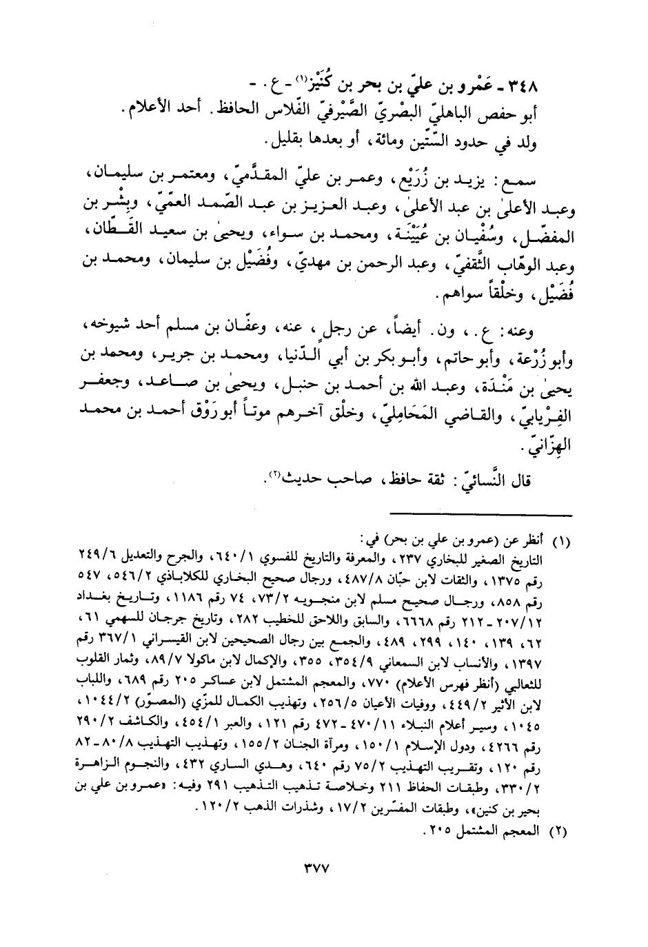 348- عمرو بن عليّ بن بحر بن كنيز [1]- ع. - أبو حفص الباهليّ البصريّ الصَّيْرفيّ الفّلاس الحافظ. أحد الأعلام.