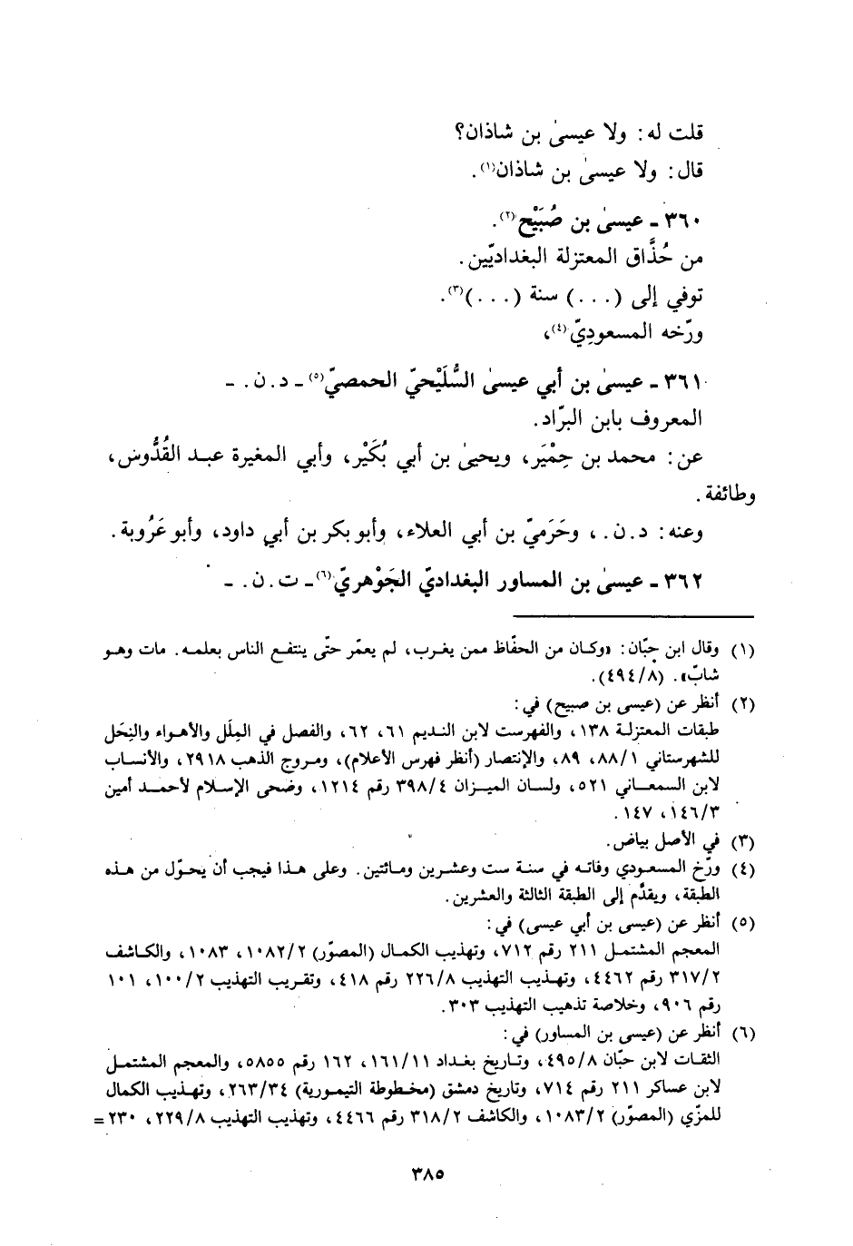 ورّخه المسعودِيّ [4] ، 361- عيسى بن أبي عيسى السُّلَيْحيّ الحمصيّ [5]- د. ن. - المعروف بابن البرّاد.