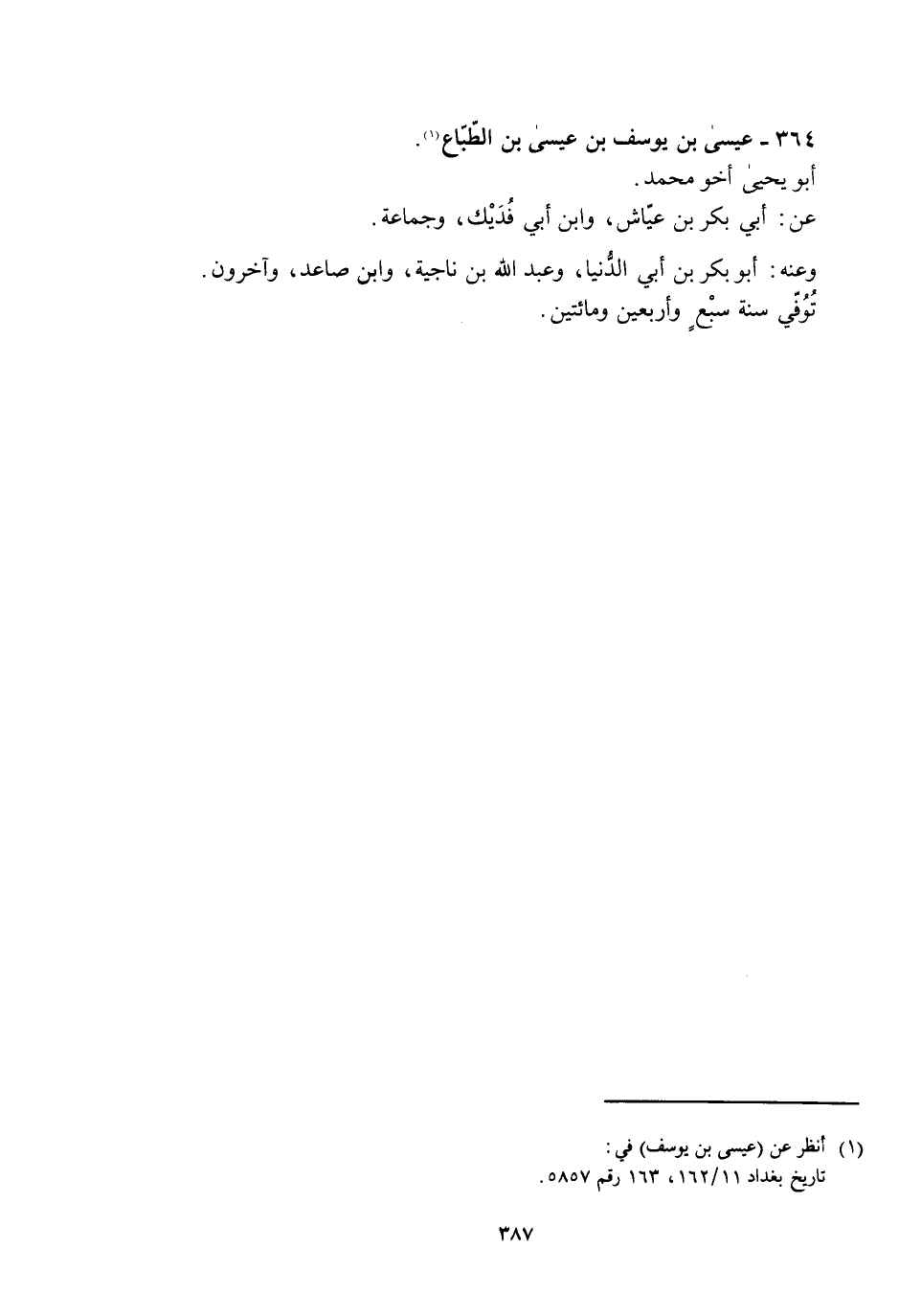 تاريخ بغداد 11/ 162، 163 رقم 5857.