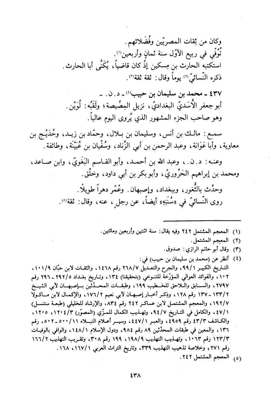 437- محمد بن سليمان بن حبيب [4]- د. ن. - أبو جعفر الأسديّ البغداديّ، نزيل المِصِّيصة، ولَقَبُه: لُوَيْن.