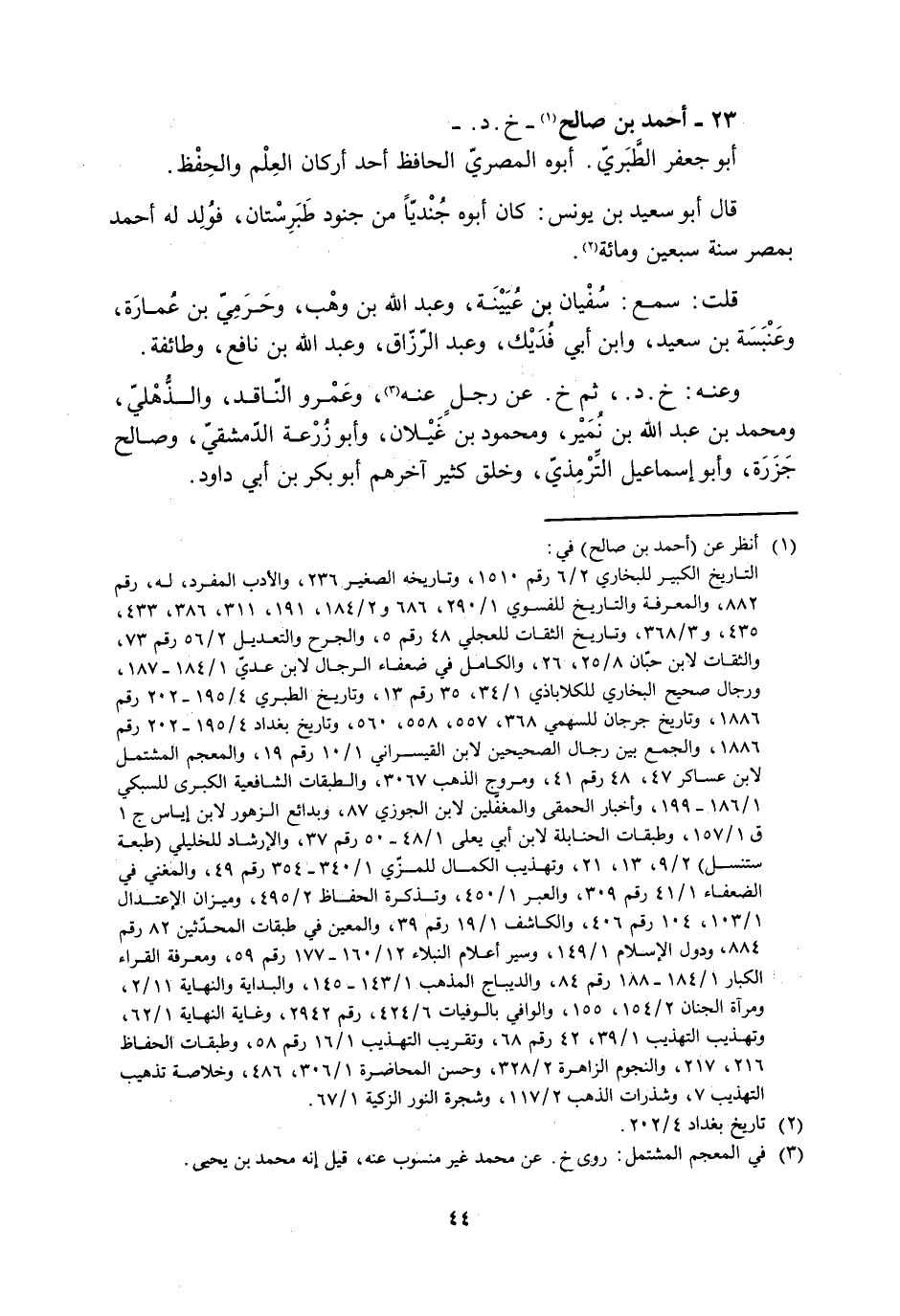 23- أحمد بن صالح [1]- خ. د. - أبو جعفر الطّبريّ. أبوه المصريّ الحافظ أحد أركان العِلْم والحِفْظ.