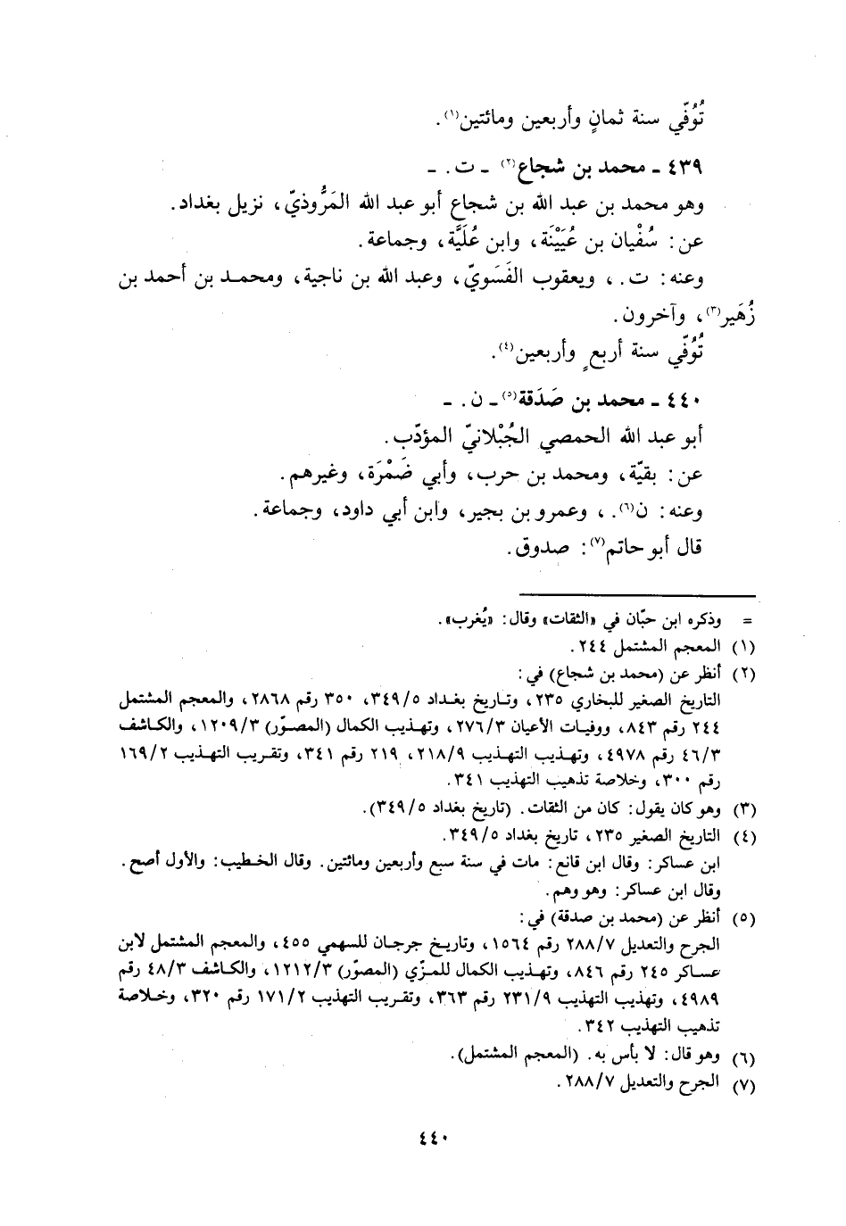 440- محمد بن صدقة [5]- ن. - أبو عبد الله الحمصي الجبلانيّ المؤدّب.