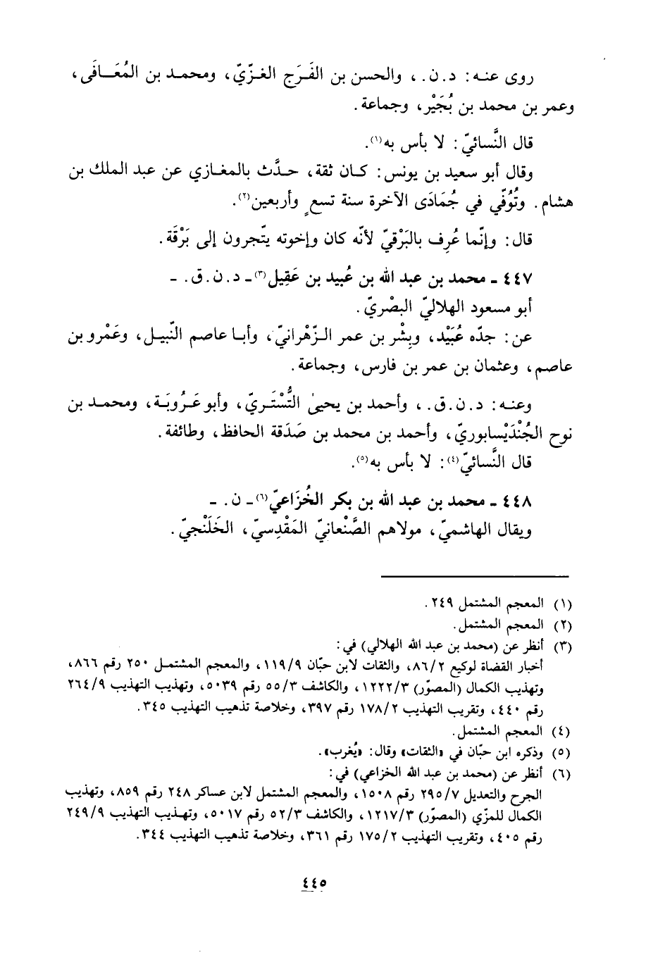 447- مُحَمَّدُ بْنُ عَبْدِ اللَّهِ بْنِ عُبَيْدِ بْنِ عقيل [3]- د. ن. ق. - أبو مسعود الهلاليّ البصريّ.