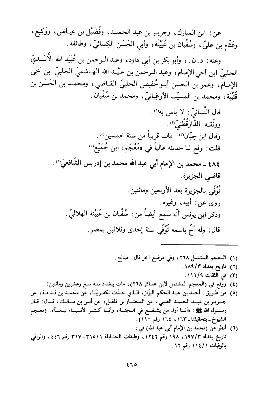 484- محمد بن الإمام أبي عبد الله محمد بن إدريس الشّافعيّ [6] .