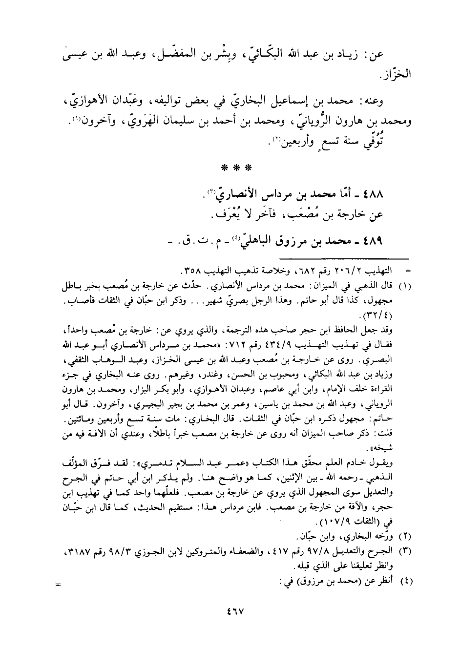 [1] قال الذهبي في الميزان: محمد بن مرداس الأنصاري. حدّث عن خارجة بن مصعب بخبر باطل مجهول، كذا قال أبو حاتم. وهذا الرجل بصريّ شهير ... وذكر ابن حبّان في الثقات فأصاب.