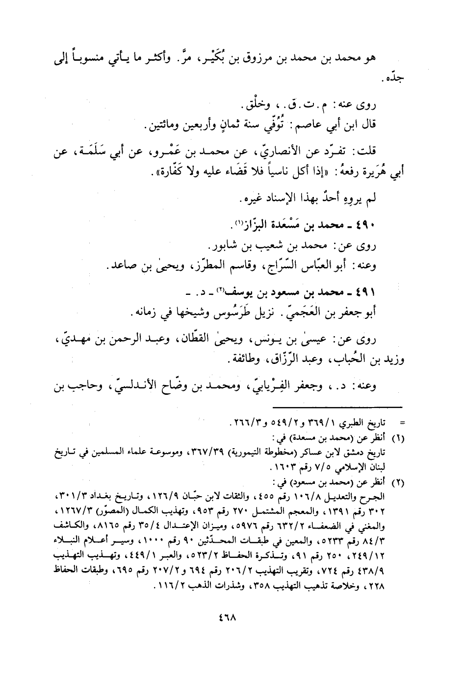 491- محمد بن مسعود بن يوسف [2]- د. - أبو جعفر بن العجميّ. نزيل طَرَسُوس وشيخها في زمانه.