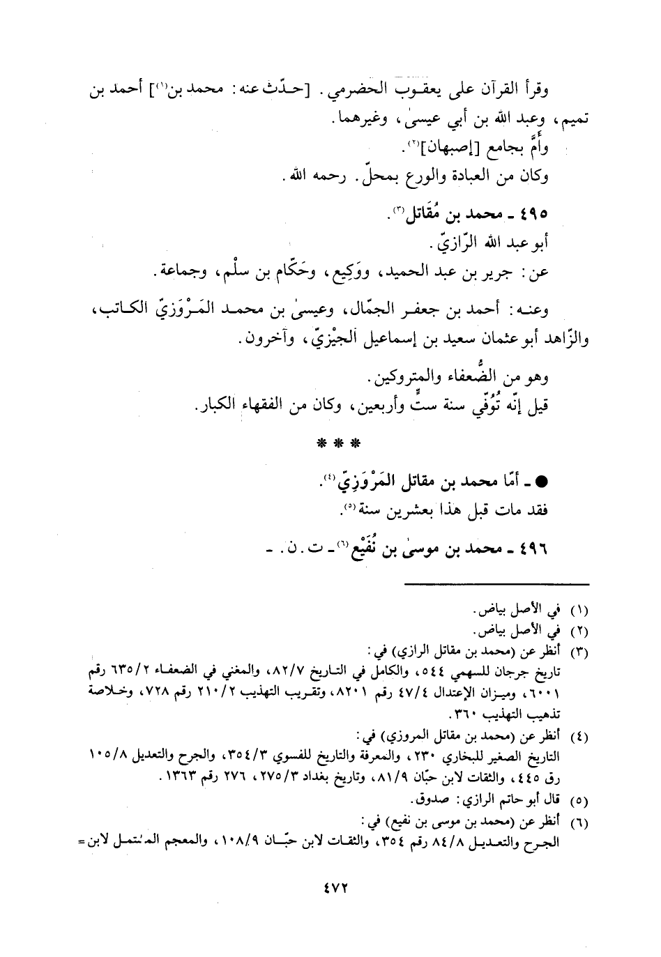 - أمّا محمد بن مقاتل المَرْوَزِيّ [4] .