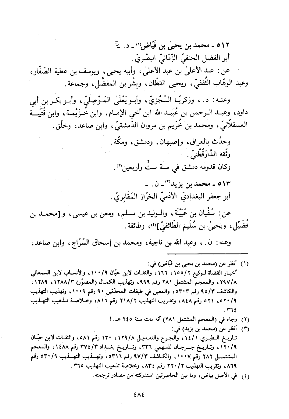 512- محمد بن يحيى بن فيّاض [1]- د. - أبو الفضل الحنفيّ الزّمّانيّ البصْريّ.