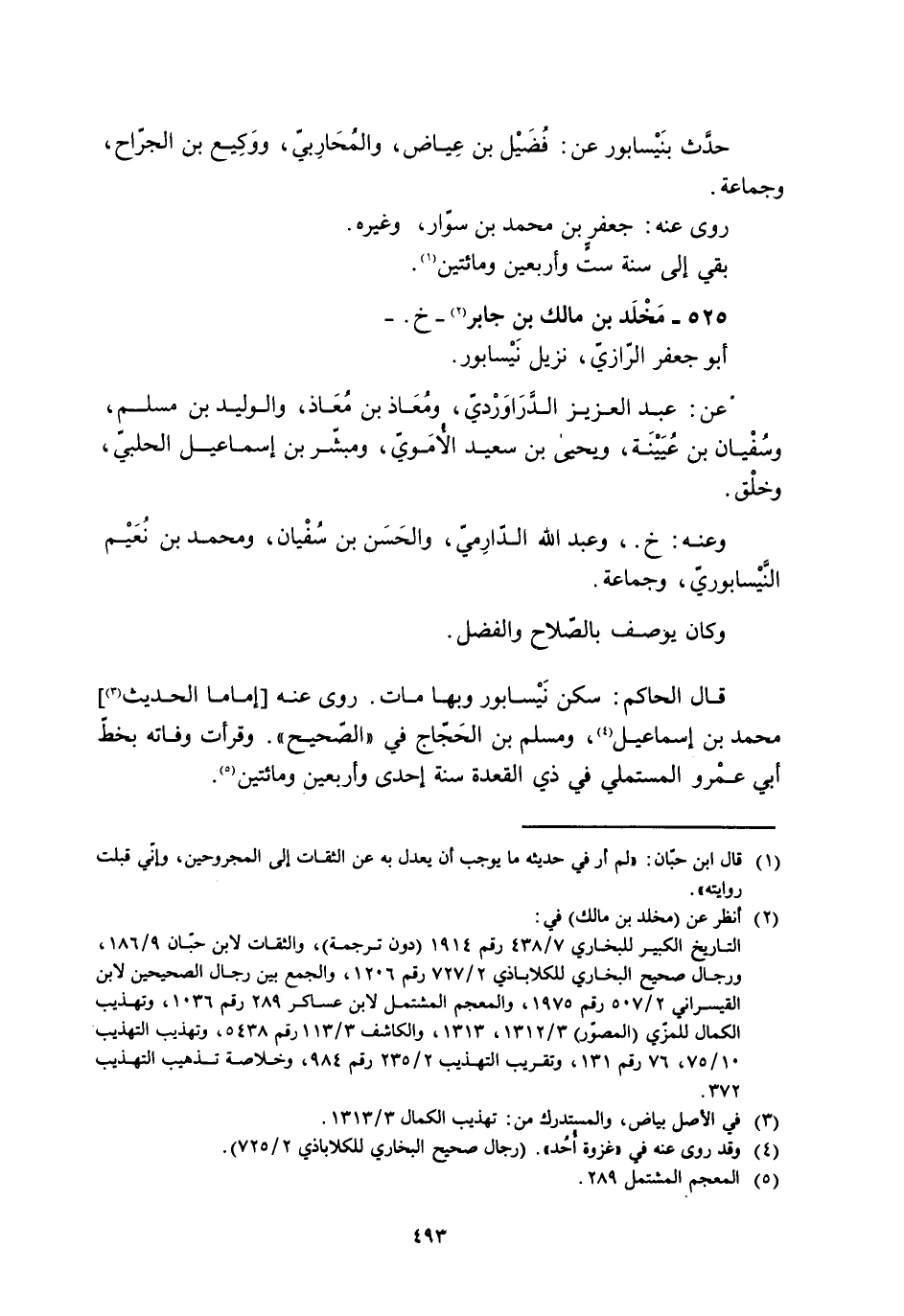 525- مَخَلَد بن مالك بن جابر [2]- خ. - أبو جعفر الرّازيّ، نزيل نَيْسابور.
