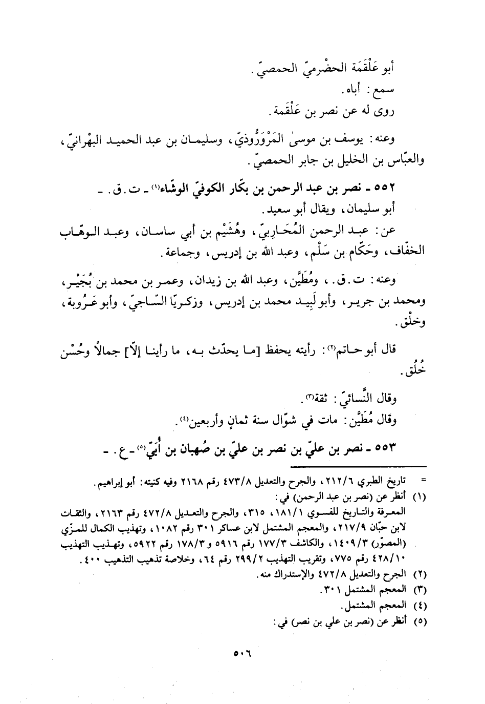 [1] انظر عن (نصر بن عبد الرحمن) في: