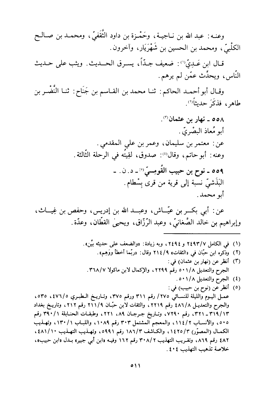 559- نوح بن حبيب القومسيّ [5]- د. ن. - البذشيّ نسبة إلى قرية من قرى بِسْطام.
