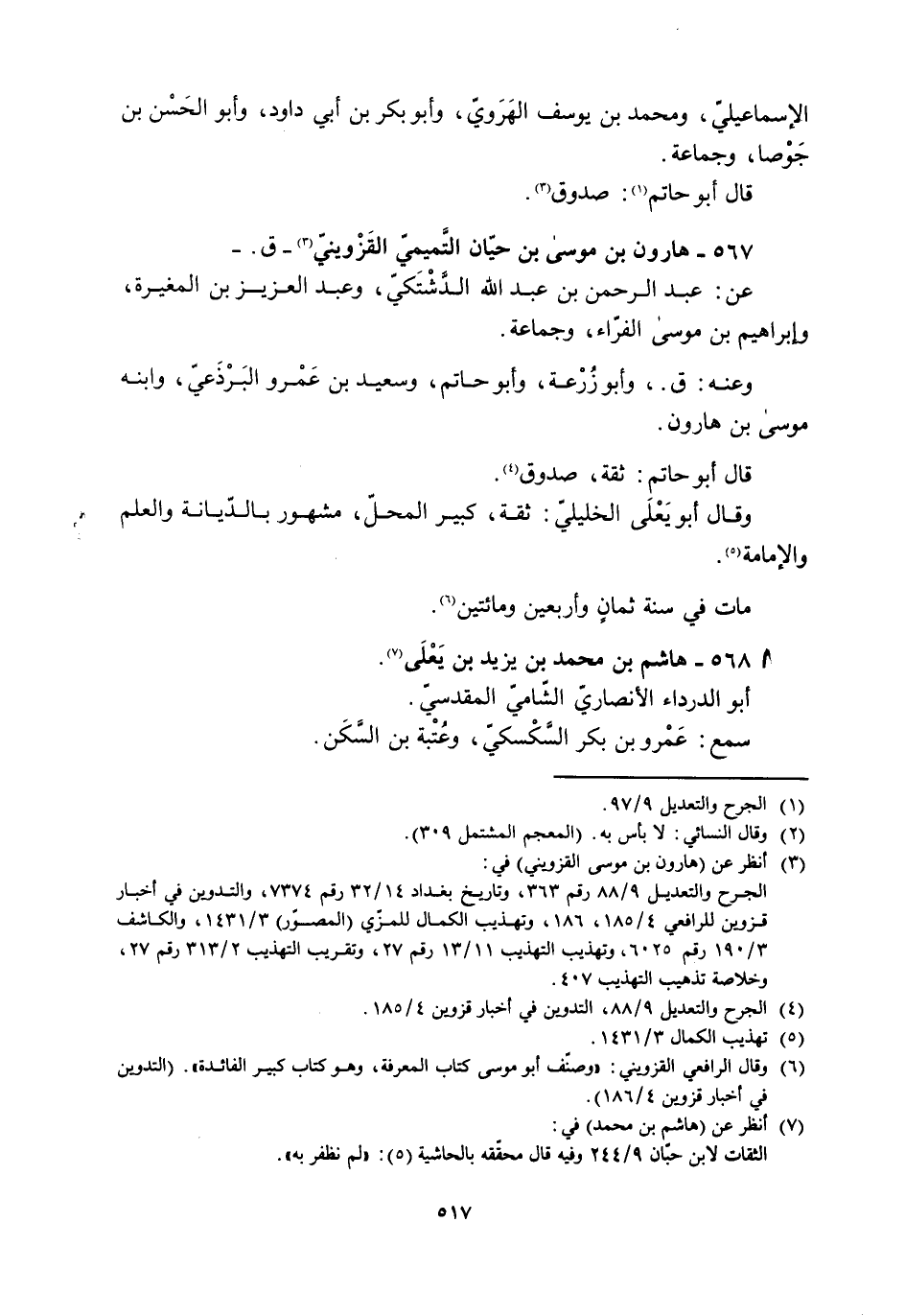 [4] الجرح والتعديل 9/ 88، التدوين في أخبار قزوين 4/ 185.