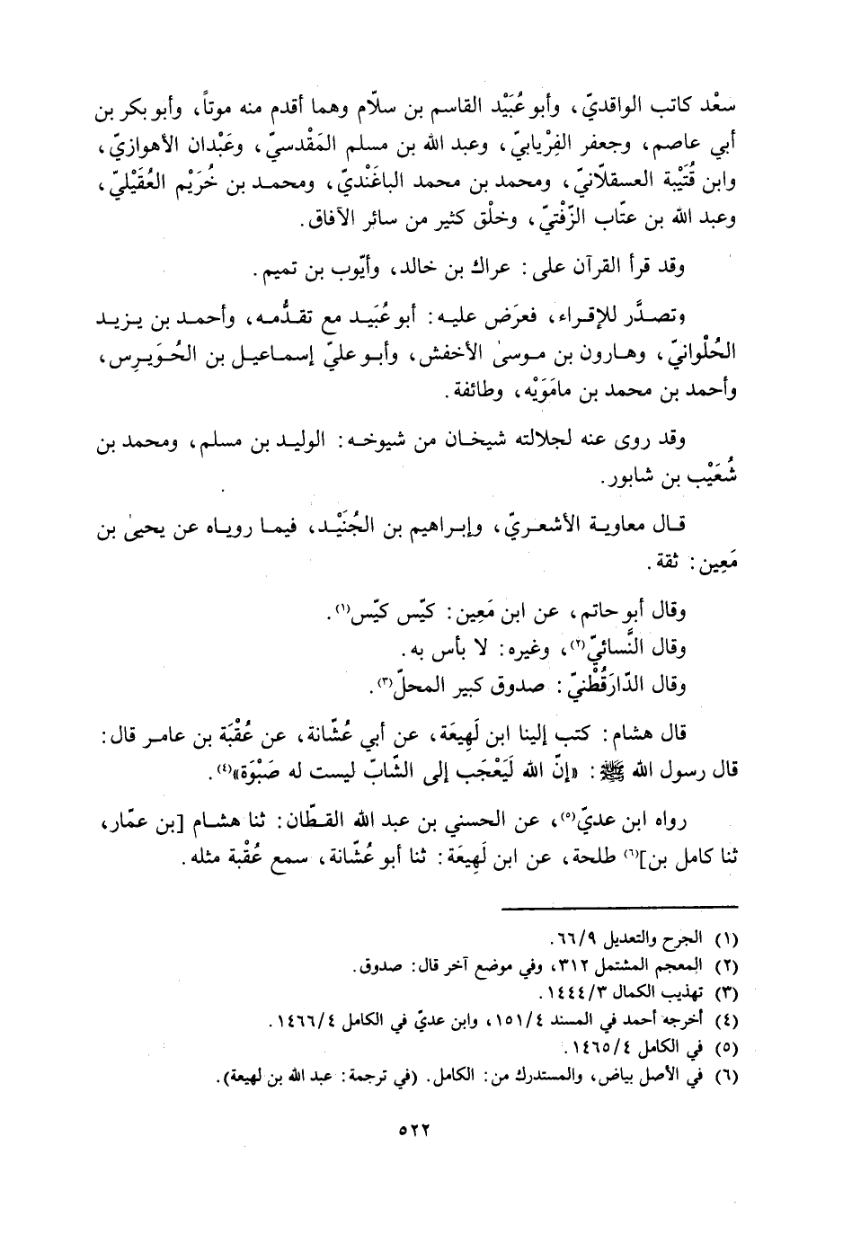 [6] في الأصل بياض، والمستدرك من: الكامل. (في ترجمة: عبد الله بن لهيعة) .