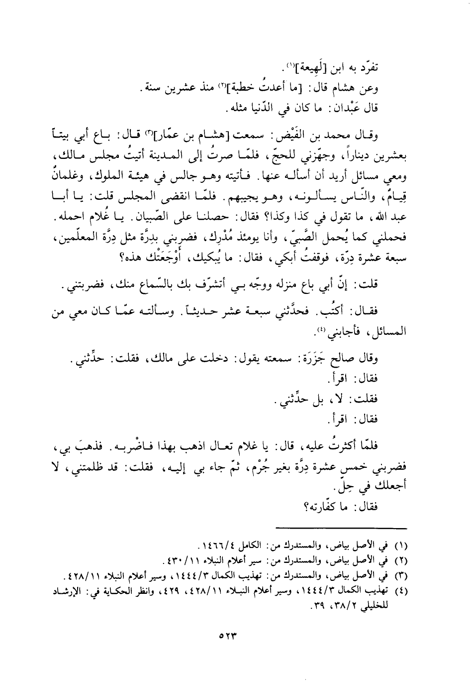[4] تهذيب الكمال 3/ 1444، وسير أعلام النبلاء 11/ 428، 429، وانظر الحكاية في: الإرشاد للخليلي 2/ 38، 39.