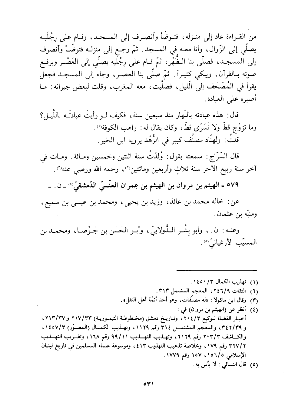 579- الهيثم بن مروان بن الهيثم بن عِمران العنْسيّ الدّمشقيّ [4]- ن. - عن: خاله محمد بن عائذ، وزيد بن يحيى، ومحمد بن عيسى بن سميع، ومنبه بن عثمان.