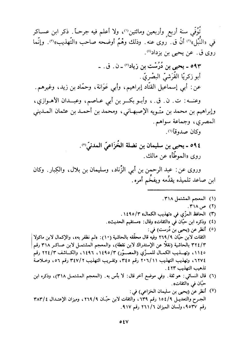 593- يحيى بن درست بن زياد [5]- ن. ق. - أبو زكريّا القرشيّ البصريّ.