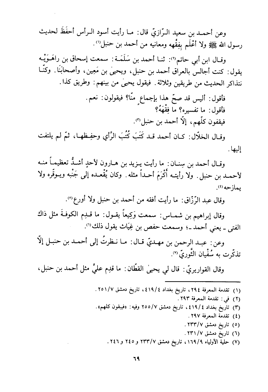 [1] تقدمة المعرفة 294، تاريخ بغداد 4/ 419، تاريخ دمشق 7/ 251.