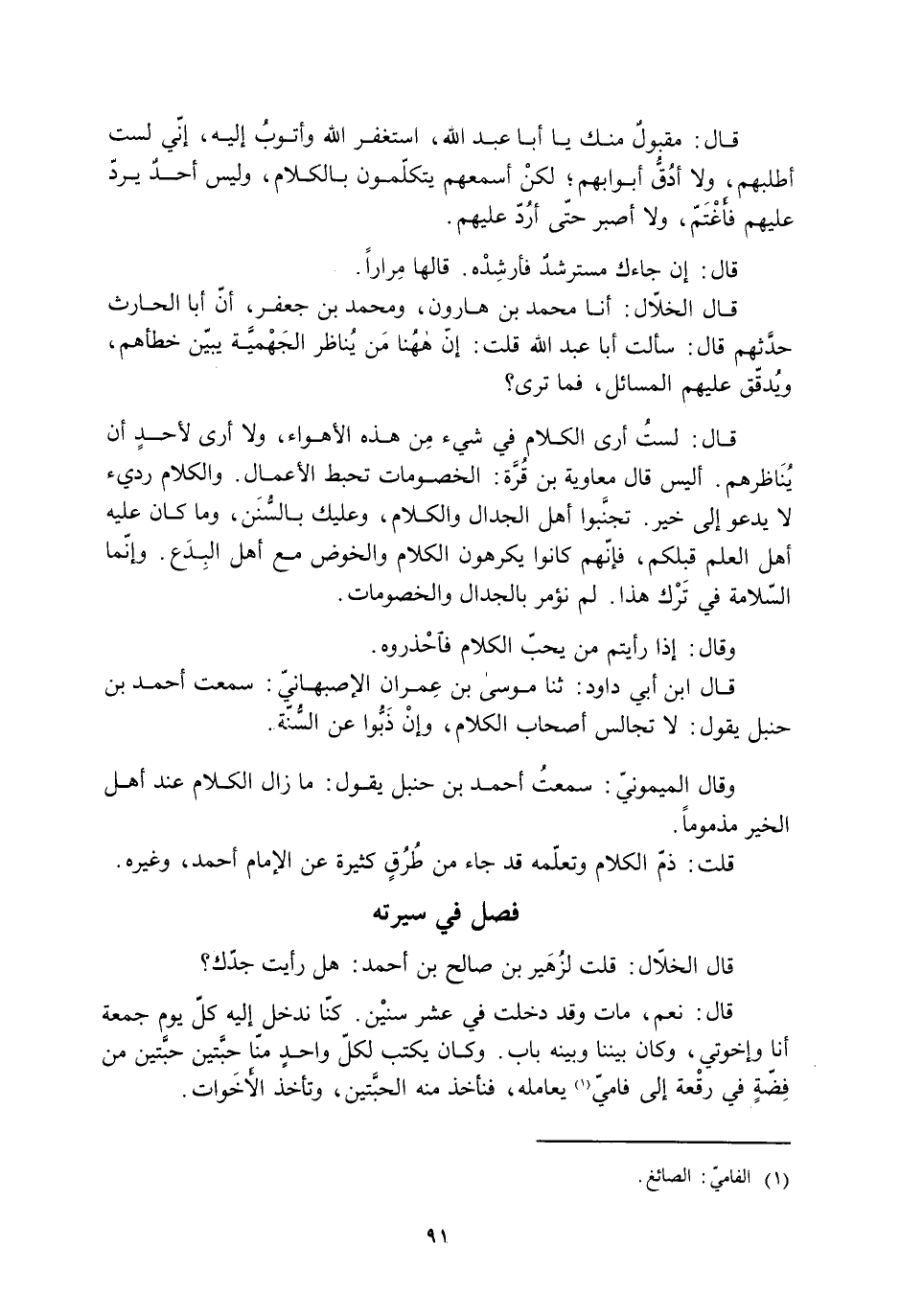 فصل في سيرته قال الخلال: قلت لزُهَير بن صالح بن أحمد: هل رأيت جدّك؟