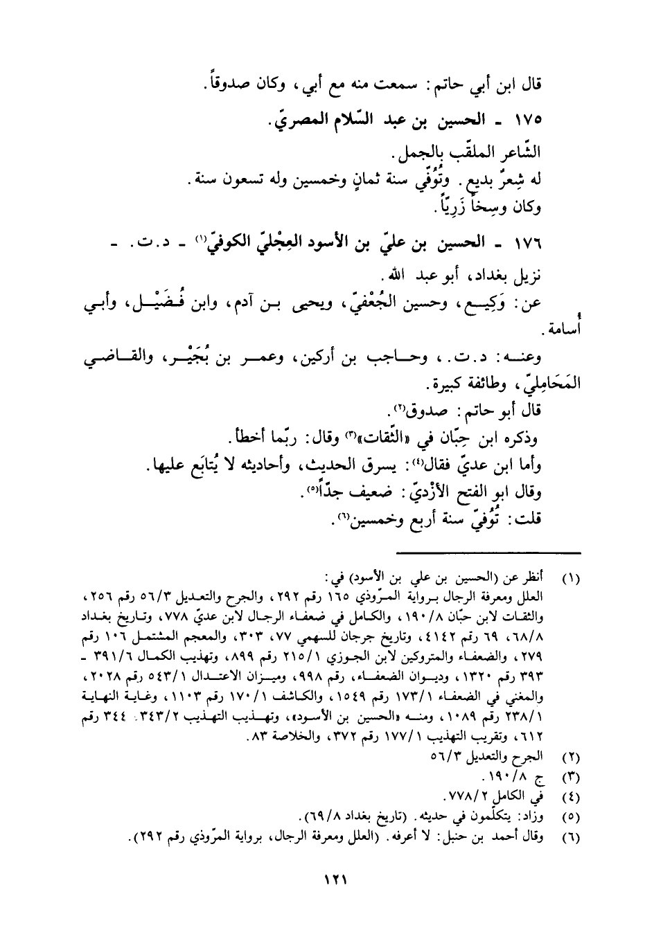 176- الْحُسَيْن بْن عَلِيّ بْن الأسود العِجْليّ الكوفيّ [1]- د. ت. - نزيل بغداد، أبو عبد الله.