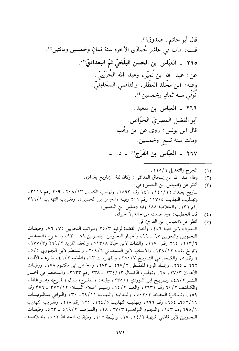 265- الْعَبَّاس بْن الْحَسَن البلْخيّ ثمّ البغداديّ [3] .