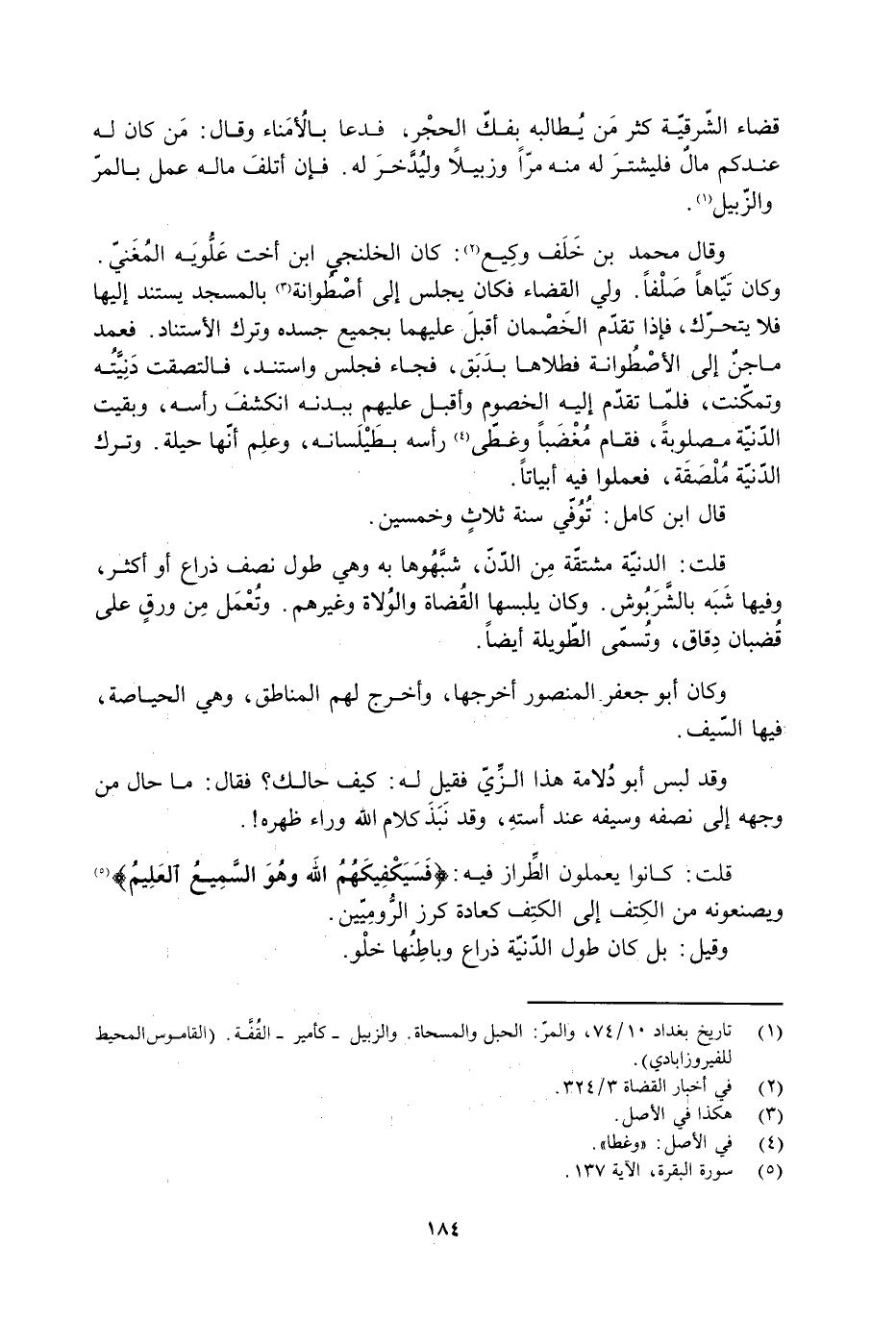 [1] تاريخ بغداد 10/ 74، والمرّ: الحبل والمسحاة. والزبيل- كأمير- القفّة. (القاموس المحيط للفيروزابادي) .