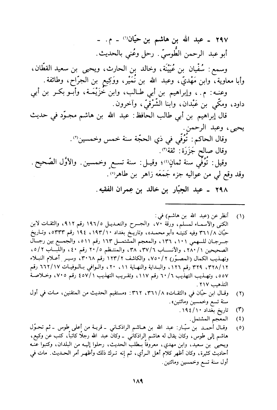 297- عبد الله بن هاشم بن حيّان [1]- م. - أبو عبد الرحمن الطّوسيّ. رحل وعُني بالحديث.