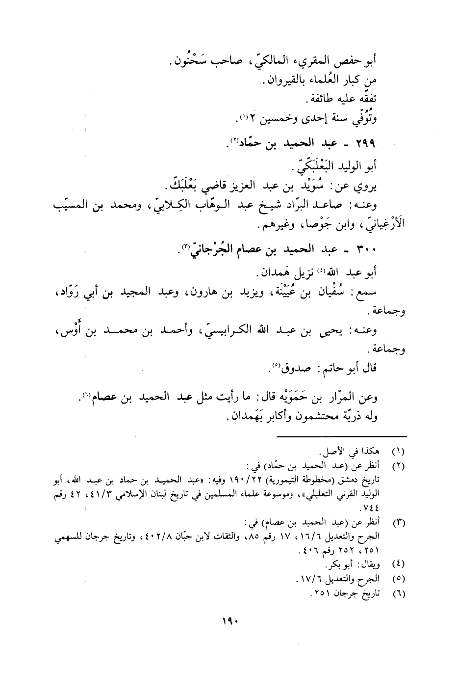 [3] انظر عن (عبد الحميد بن عصام) في: