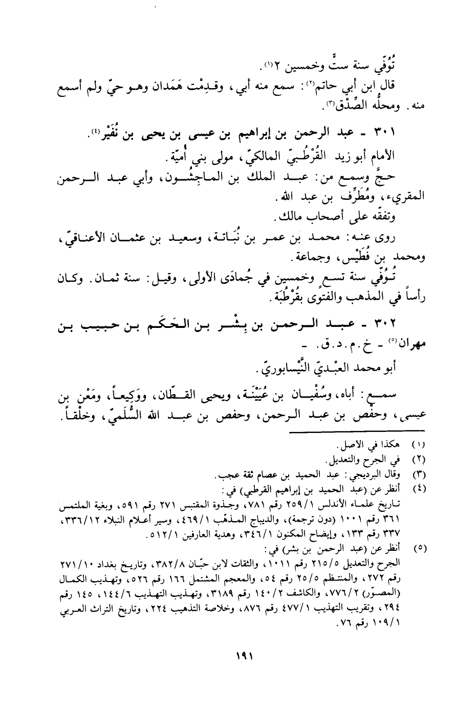 301- عَبْد الرَّحْمَن بْن إِبْرَاهِيم بْن عيسى بْن يحيى بْن نُفَيْر [4] .