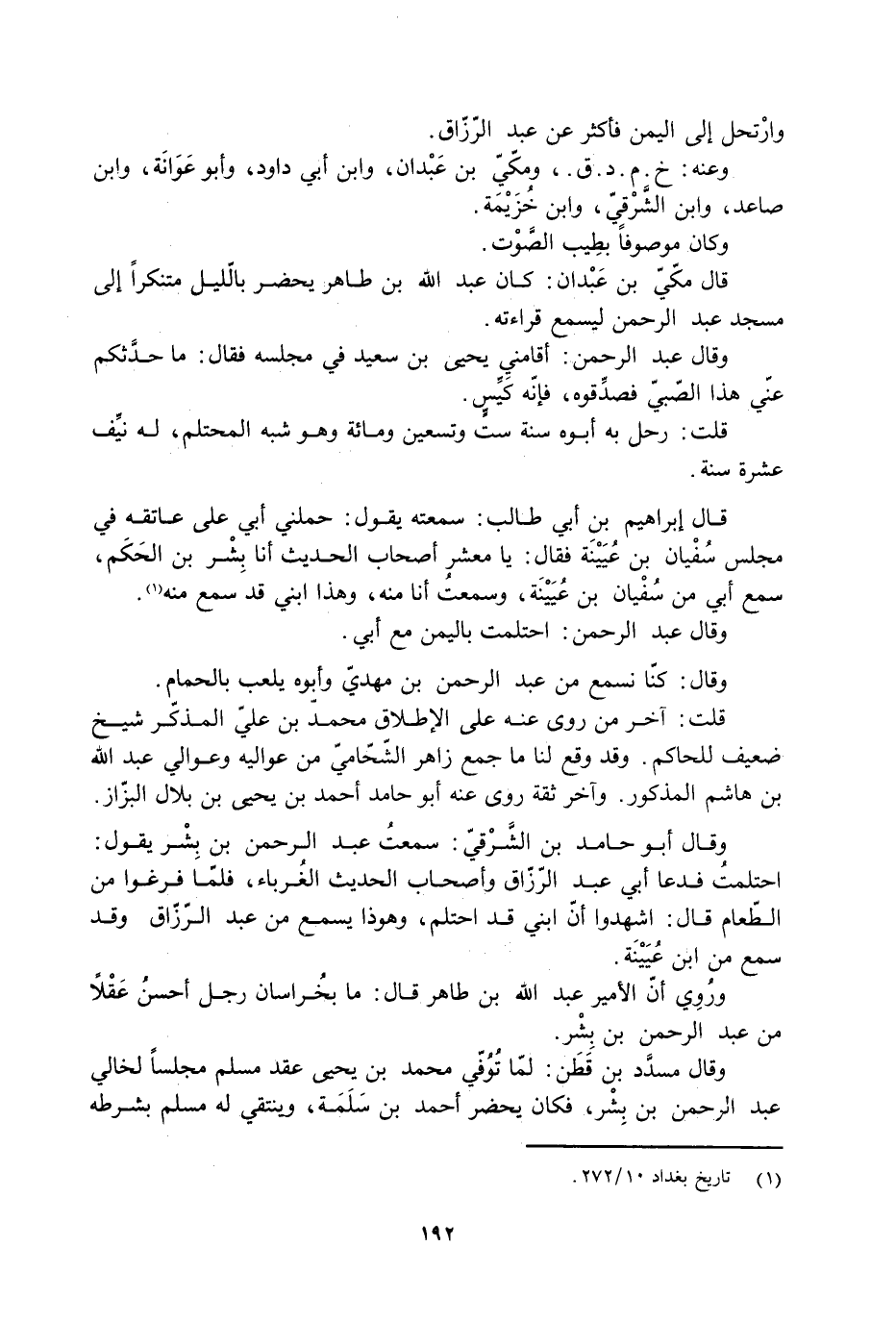 وارْتحل إلى اليمن فأكثر عَنْ عَبْد الرّزّاق.
