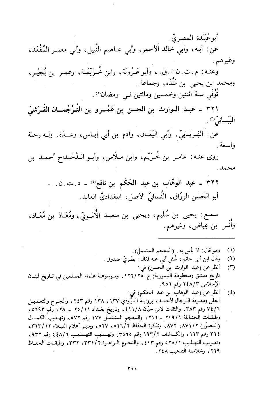 322- عبد الوهاب بن عبد الحكم بن نافع [4]- د. ت. ن. - أبو الحسن الوراق، النَّسائيّ الأصل، البغداديّ العابد.