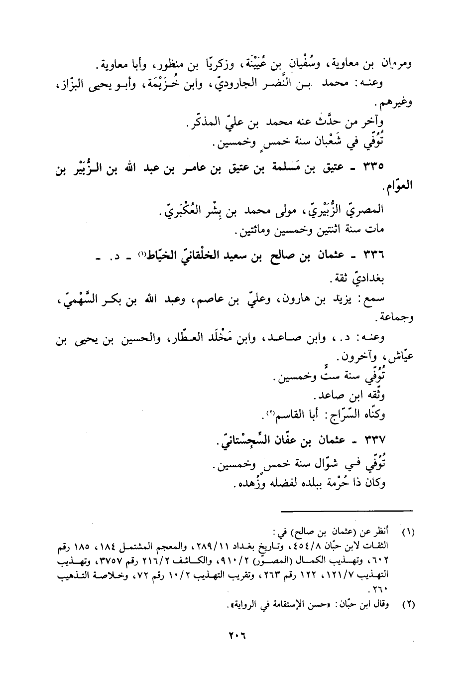 336- عثمان بْن صالح بْن سعَيِد الخلْقانيّ الخيّاط [1]- د. - بغدادي ثقة.
