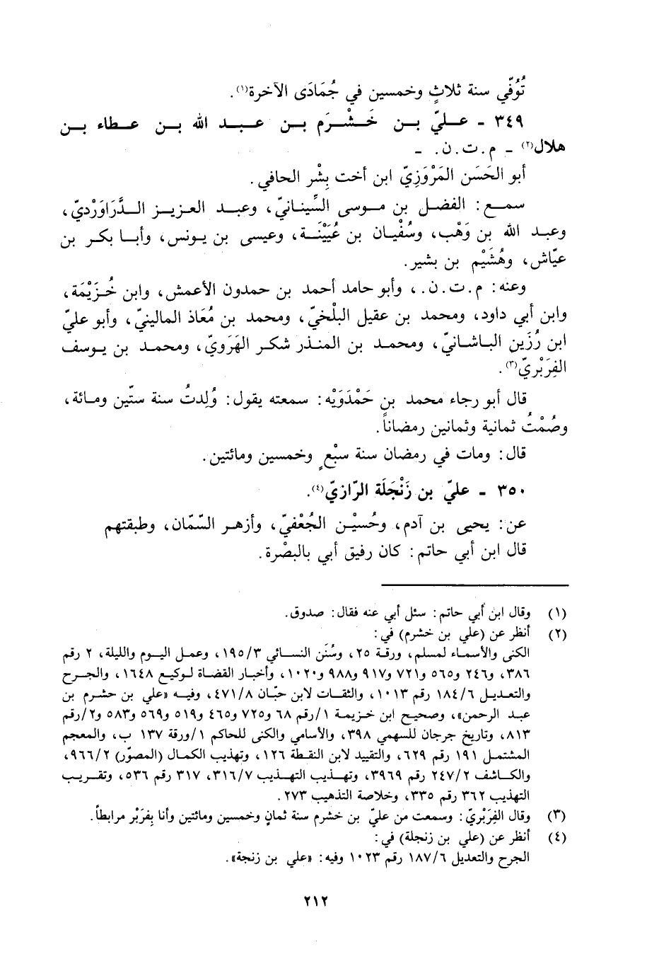 349- علي بن خشرم بن عبد الله بن عطاء بن هلال [2]- م. ت. ن. - أبو الحسن المروزيّ ابن أخت بِشْر الحافي.