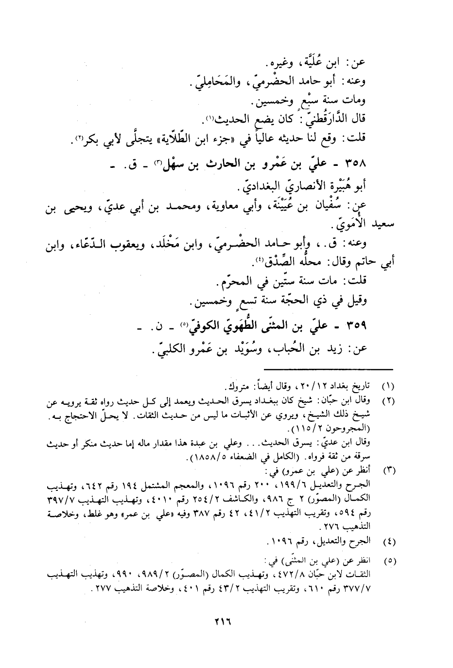 359- عَلِيّ بْن المُثَنَّى الطُّهَويّ الكوفيّ [5]- ن. - عَنْ: زيد بْن الحُباب، وسُوَيْد بْن عَمْرو الكلبيّ.
