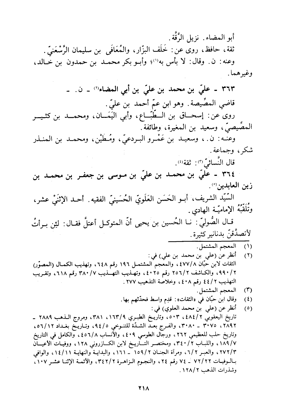 364- علي بْن محمد بْن علي بْن مُوسَى بن جعفر بن محمد بن زين العابدين [5] .