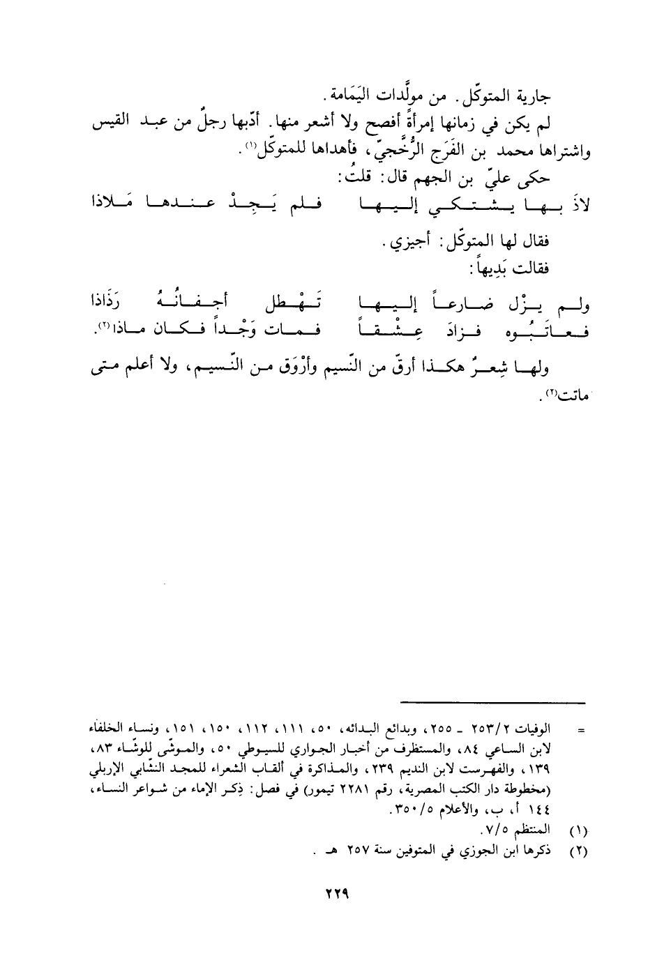 ولها شِعرٌ هكذا أرق مِنَ النسيم وأرْوَق مِنَ النسّيم، ولا أعلم متى ماتت [2] .