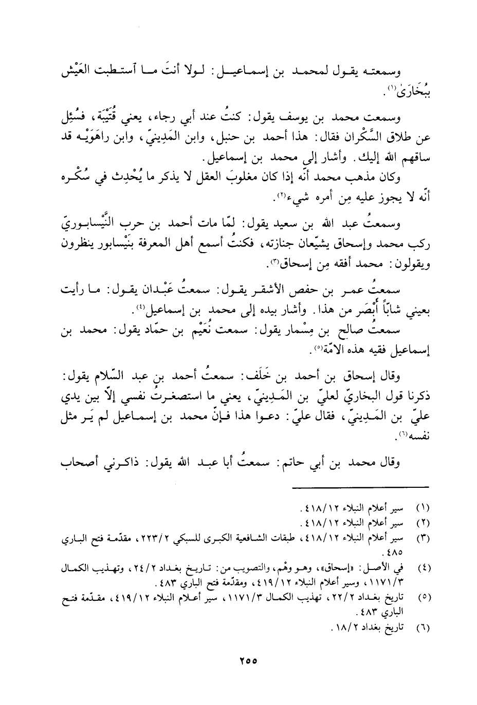 [5] تاريخ بغداد 2/ 22، تهذيب الكمال 3/ 1171، سير أعلام النبلاء 12/ 419، مقدّمة فتح الباري 483.