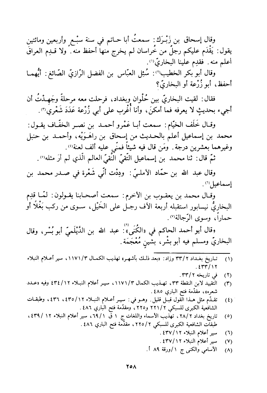 [8] الأسامي والكنى ج 1/ ورقة 89 أ.