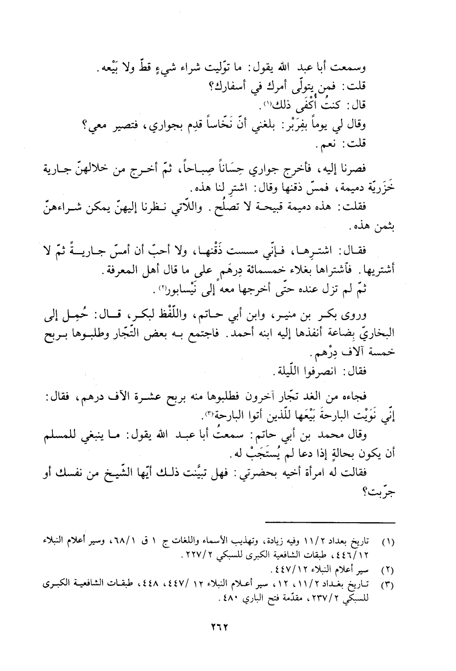 [3] تاريخ بغداد 2/ 11، 12، سير أعلام النبلاء 12/ 447، 448، طبقات الشافعية الكبرى للسبكي 2/ 237، مقدّمة فتح الباري 480.