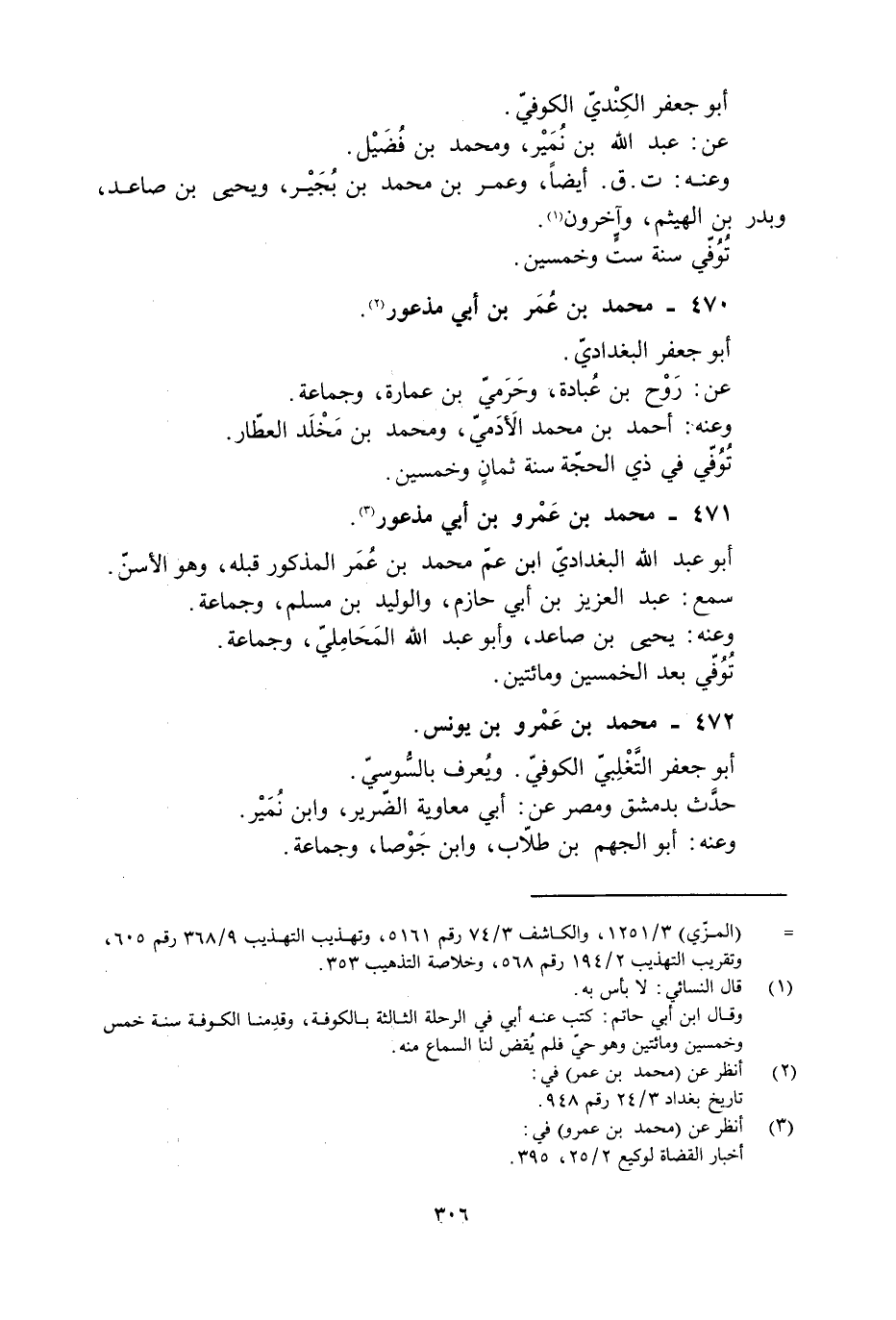 [ () ] (المزّي) 3/ 1251، والكاشف 3/ 74 رقم 5161، وتهذيب التهذيب 9/ 368 رقم 605، وتقريب التهذيب 2/ 194 رقم 568، وخلاصة التذهيب 353.