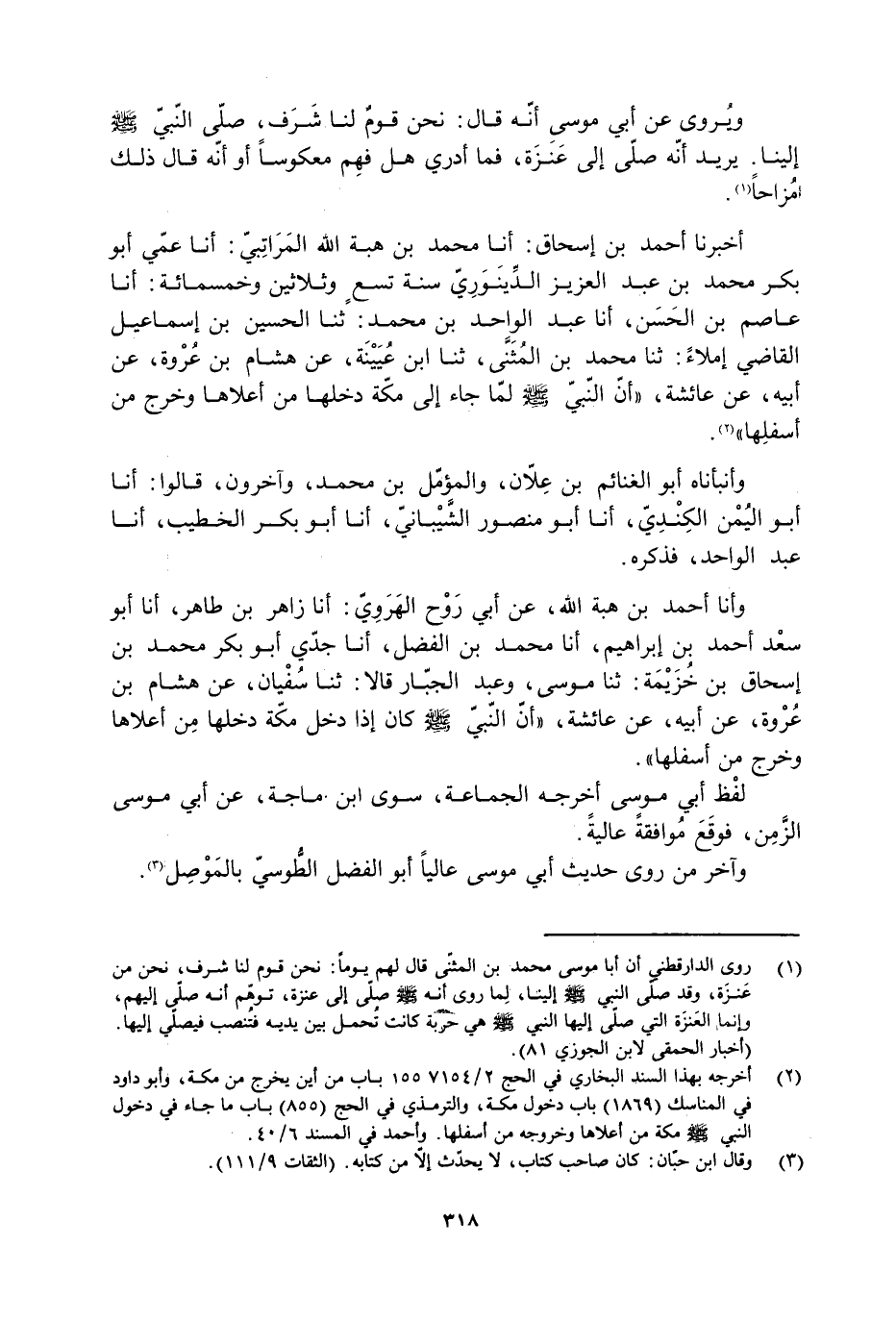 أَخْبَرَنَا أَحْمَدُ بْنُ إِسْحَاقَ: أَنَا محمد بْنُ هِبَةِ اللَّهِ الْمَرَاتِبِيُّ: أَنَا عَمِّي أَبُو بَكْرٍ محمد بْنُ عَبْدِ الْعَزِيزِ الدَّيْنَوَرِيُّ سنة تِسْعٍ وَثَلاثِينَ وَخَمْسِمِائَةٍ: أَنَا عَاصِمُ بْنُ الْحَسَنِ، أَنَا عَبْدُ الْوَاحِدِ بْنُ محمد: ثَنَا الْحُسَيْنُ بْنُ إِسْمَاعِيلَ الْقَاضِي إِمْلاءً: ثَنَا محمد بْنُ الْمُثَنَّى، ثَنَا ابْنُ عُيَيْنَةَ، عَنْ هِشَامِ بْنِ عُرْوَةَ، عَنْ أَبِيهِ، عَنْ عَائِشَةَ، «أَنَّ النَّبِيَّ صَلَّى اللَّهُ عَلَيْهِ وَسَلَّمَ لَمَّا جَاءَ إِلَى مَكَّةَ دَخَلَهَا مِنْ أَعْلاهَا وخرج من أسفلها» [2] .