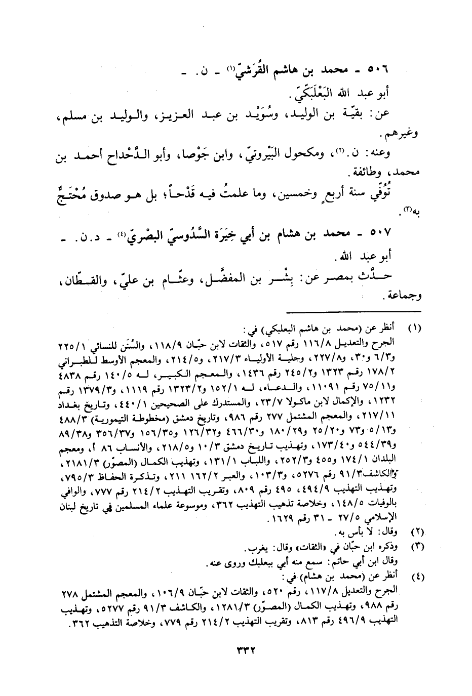 506- محمد بن هاشم القرشيّ [1]- ن. - أبو عبد الله البَعْلَبَكّيّ.