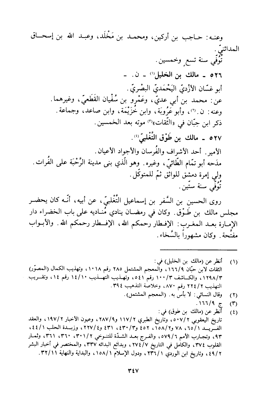 526- مالك بن الخليل [1]- ن. - أبو غسّان الأزديّ اليحمديّ البصريّ.