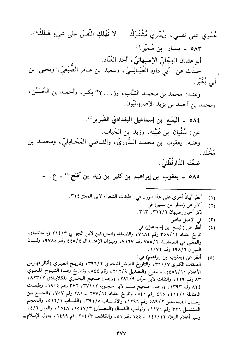583- يسار بْن سُمَيْر. [2] أَبُو عثمان العِجْليّ الأصبهاني، أحد العُبّاد.