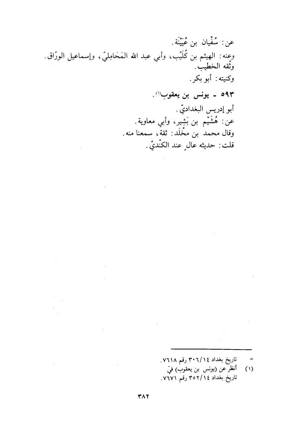[ () ] تاريخ بغداد 14/ 306 رقم 7618.