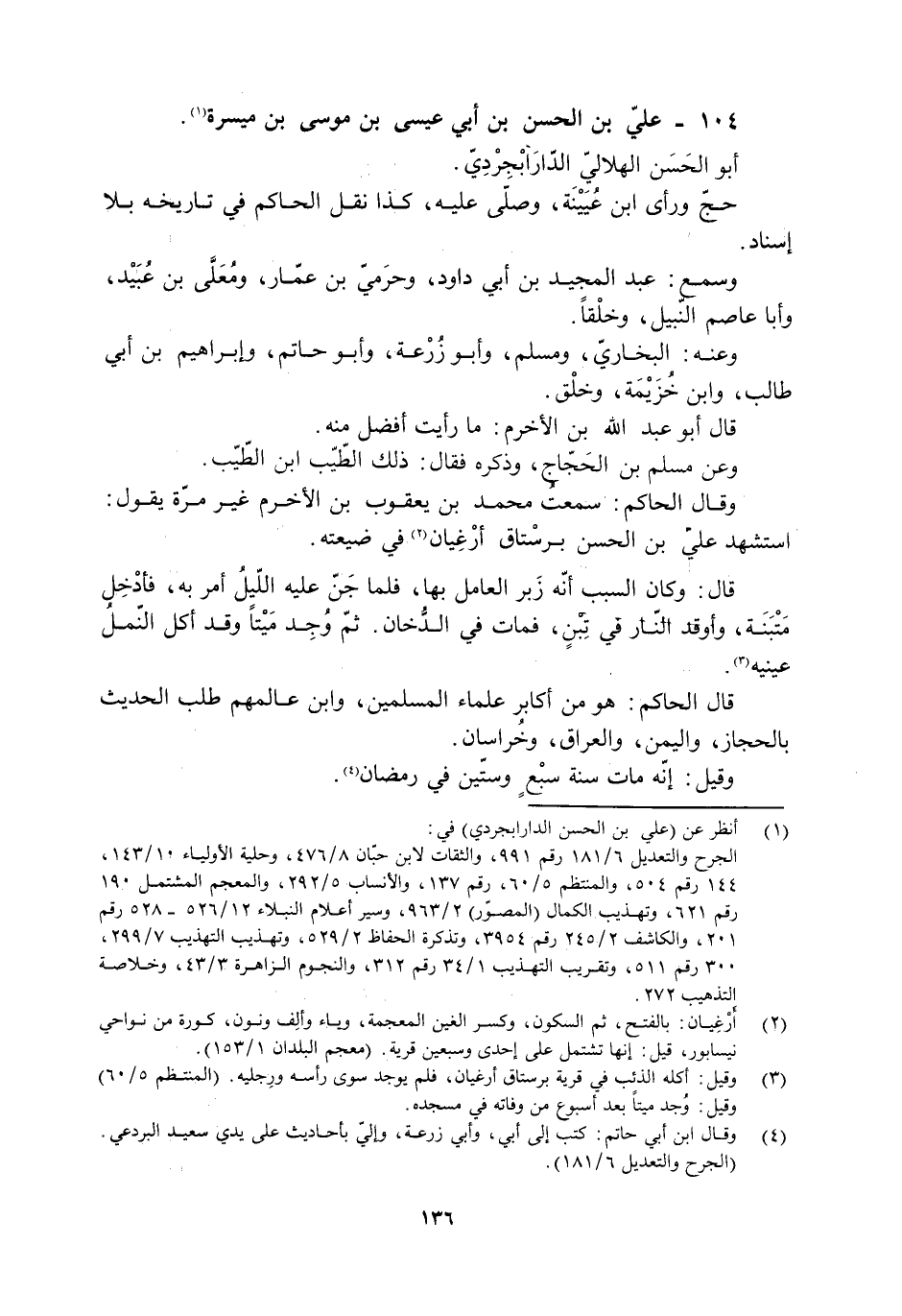 [1] انظر عن (علي بن الحسن الدارابجردي) في:
