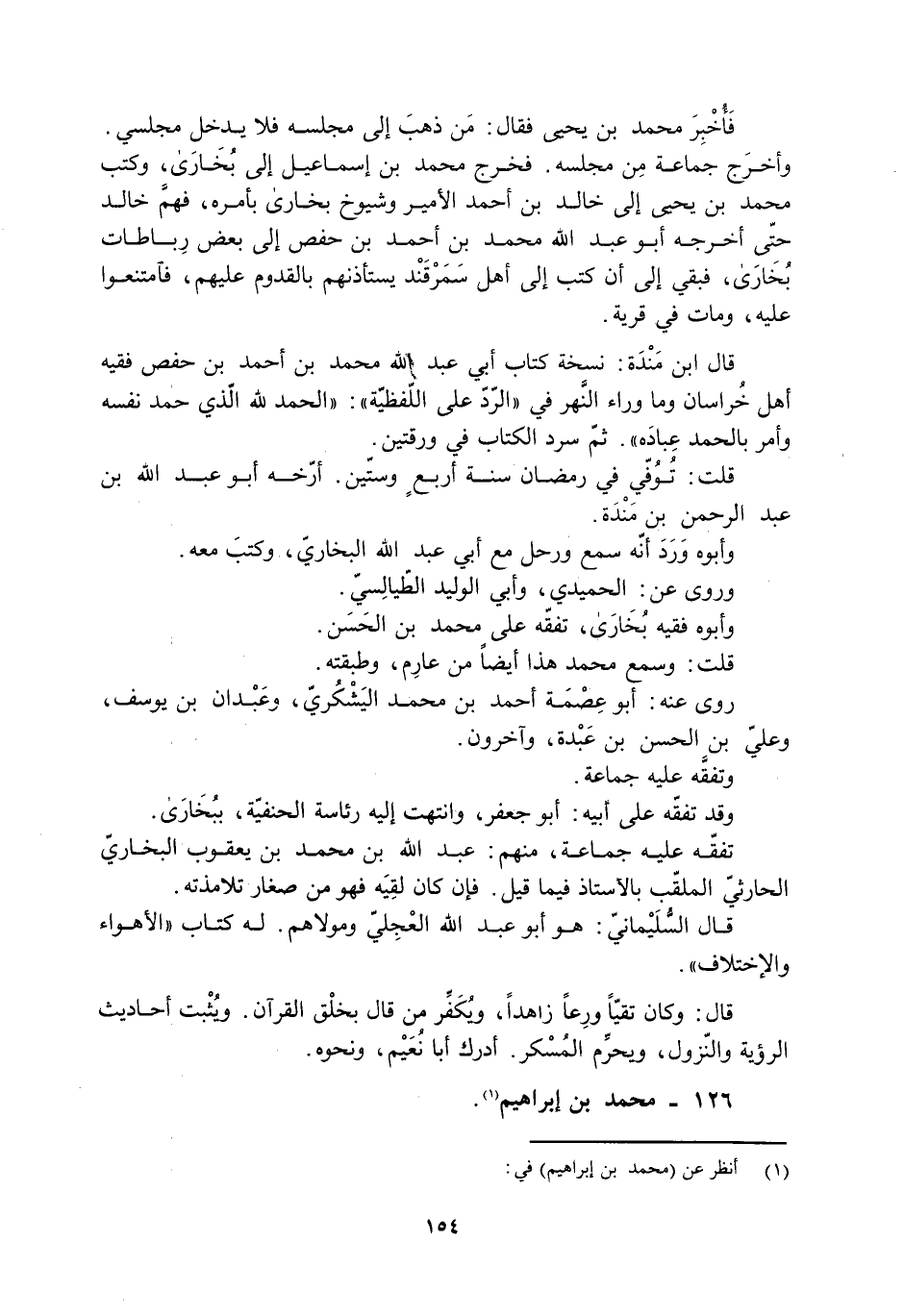 قَالَ ابنُ مَنْدَه: نسخة كتاب أَبِي عَبْد الله محمد بْن أَحْمَد بْن حَفْص فقيه أَهْل خُراسان وما وراء النَّهر في «الرّدّ على اللّفظيّة» : «الحمد للَّه الَّذِي حمد نفسه وأمر بالحمد عِباده» . ثُمَّ سرد الكتاب فِي ورقتين.