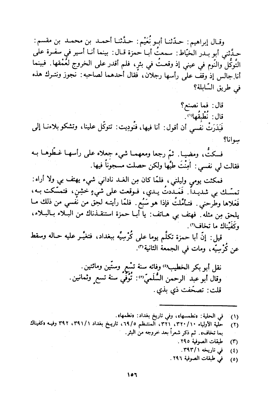 [2] حلية الأولياء 10/ 320، 321، المنتظم 5/ 69، تاريخ بغداد 1/ 391، 392 وفيه «كفيناك بما تخاف» . ثم ذكر شعرا بعد خروجه من البئر.
