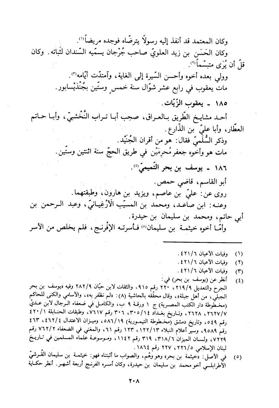 [5] في الأصل: «خيثمة بن بحر» وهو وهم، والصواب ما أثبتناه فهو: خيثمة بن سليمان القرشيّ الأطرابلسي أخو محمد بن سليمان بن حيدرة، وكان أسره الفرنج أربعة أشهر. انظر حكاية