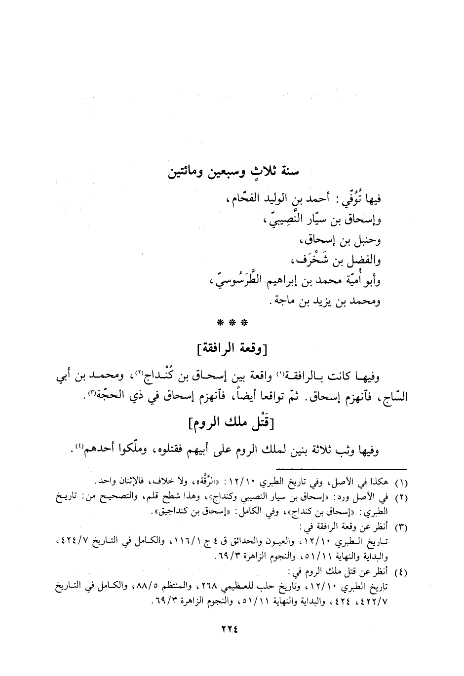 [2] في الأصل ورد: «إسحاق بن سيار النصيبي وكنداج» ، وهذا شطح قلم، والتصحيح من: تاريخ الطبري: «إسحاق بن كنداج» ، وفي الكامل: «إسحاق بن كنداجيق» .